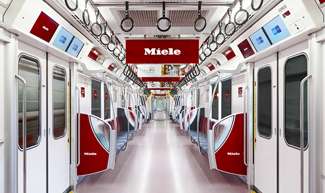 電車広告 •期間:2025年10月16日(木)~10月31日(金) •路線:東京メトロ『銀座線』、『丸ノ内線』、『日比谷線』 ※期間中は各路線をMieleが広告ジャックした電車が走行します。(走行本数は日によって異なります)