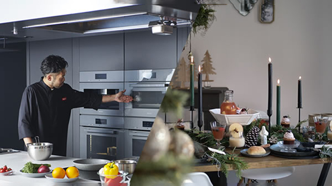 Miele Experience Center では、プロのシェフによるデモンストレーション形式で、Miele調理機器の性能や使い勝⼿の良さなどを五感で体験いただくイベント「Miele Chef's Table」を2025年よりほぼ毎⽉開催。Miele のオーブン、IH クッキングヒーター、コンビスチームオーブンなどを使⽤し、プロのシェフが⽬の前で腕を振るうデモンストレーションを⾏いながら美味しく仕上げるコツをご紹介しています。今回の「Miele Chefʼs Table Noël」はホリデーシーズンに合わせた特別企画で、「Cook & Style」をテーマに、シェフによるクリスマス料理のライブクッキングとホリデーシーズンのテーブルコーディネート術が学べる内容となっています。12⽉12⽇(⾦)・13⽇(⼟)に表参道の店舗で実施する回では、雑誌・広告・ブランドショーウィンドウなどのスタイリングを多数⼿掛けるプロップスタイリストの⼆本柳志津⾹さんをゲストにお迎えして、クリスマスのテーブルスタイリングを教えていただきます。表参道店以外の店舗では、⼆本柳さんによるテーブルコーディネートのレッスン動画をご覧いただくほか、ご⾃宅で簡単にテーブルスタイリングできるヒントを紹介した冊⼦をプレゼントいたします。